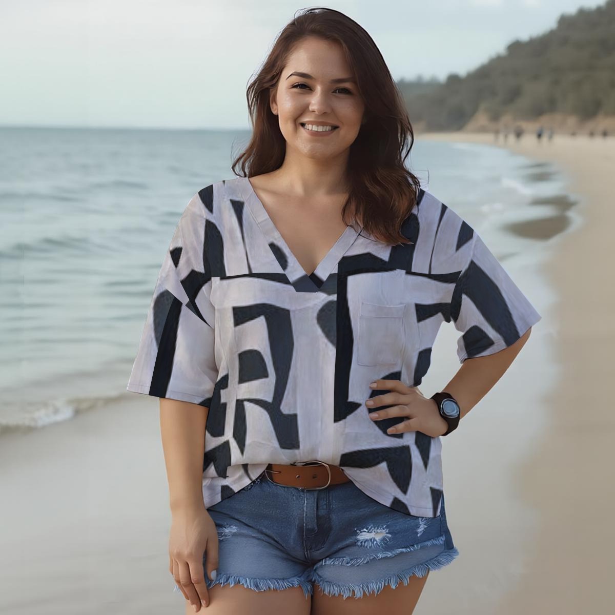 Stay comfortable and effortlessly stylish with our Women’s Casual V-Neck Short Sleeve Top. Made from premium cotton-like polyester fabric, this piece offers the soft handfeel of cotton while providing the durability and easy-care benefits of polyester. The relaxed fit and breathable material make it perfect for daily wear, whether you’re heading to the beach, running errands, or lounging at home.Designed with a flattering V-neckline and a versatile silhouette, this top pairs easily with jeans, shorts, or skirts for a chic and casual look.